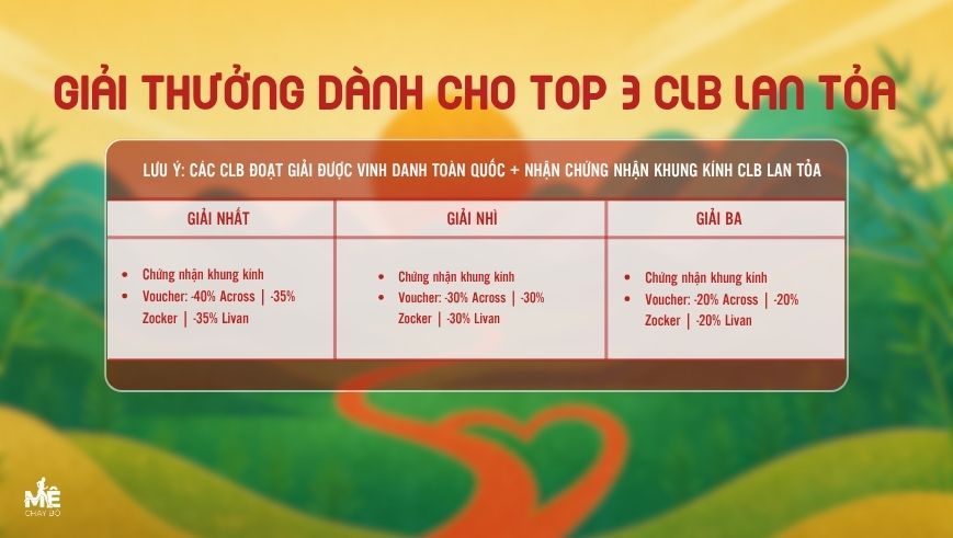 TOP 3 CLB lan toả : Có nhiều thành viên hoàn thành challenge nhất (70%) và số km nhiều nhất (30%)